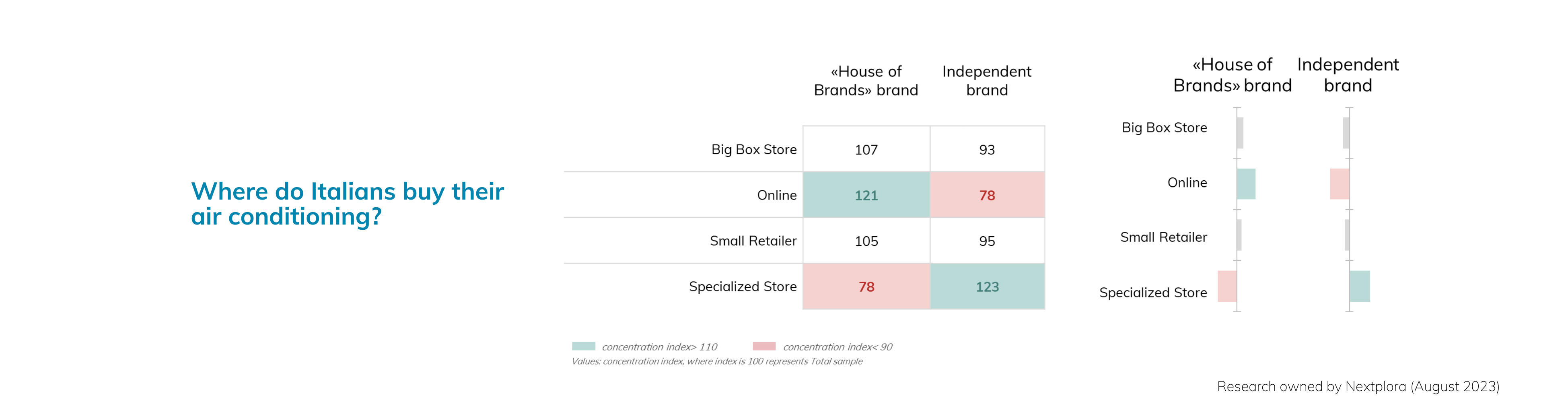 Approfondendo ulteriormente, l’indice di concentrazione ha illuminato schemi di distribuzione affascinanti. I brand di “House of Brands” hanno dimostrato una pronunciata predilezione per i canali di vendita online, mentre i negozi specializzati hanno registrato una concentrazione più modesta. Al contrario, i brand indipendenti hanno mostrato una minore concentrazione nel mondo digitale, ma hanno dimostrato una presenza più sostanziale in negozi più piccoli e specializzati.