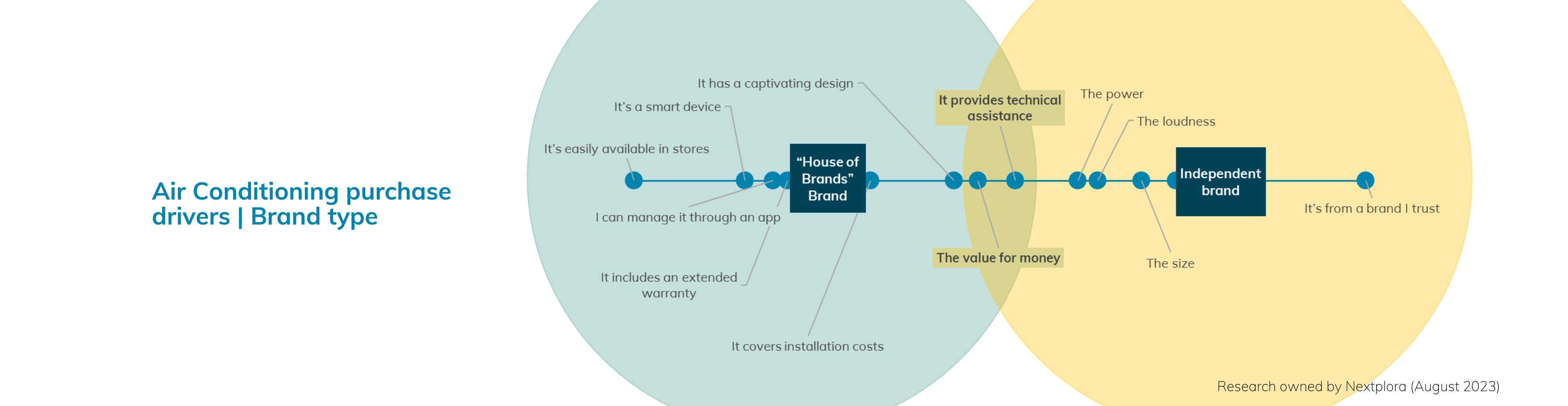 Un aspetto chiave dello studio ha illuminato le diverse motivazioni che guidano le preferenze dei consumatori nella scelta delle unità di aria condizionata in base alla tipologia di brand. Coloro che si orientano verso i brand di “House of Brands” attribuiscono un valore elevato a variabili come i costi di installazione, le garanzie estese, le funzionalità smart dell’unità, la gestione tramite app e la disponibilità immediata in negozio. Al contrario, i consumatori che optano per i brand indipendenti attribuiscono importanza alle dimensioni, ai livelli di rumore, alla potenza e alla reputazione del brand in termini di affidabilità. Tuttavia, un’enfasi condivisa sull’accessibilità dell’assistenza tecnica e sul rapporto qualità-prezzo colma la distanza tra questi due segmenti di consumatori distinti.
