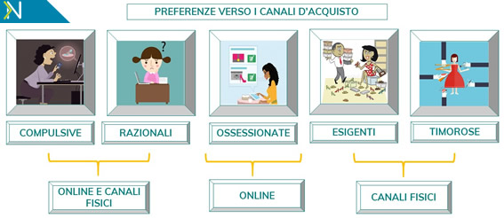 - Le ESIGENTI: il 26% delle Italiane acquista prevalentemente in negozi di fiducia, per ricevere consigli dalla commessa che spesso conosce bene e sa comprendere i suoi gusti. Per queste donne il negozio fisico è la soluzione preferita.