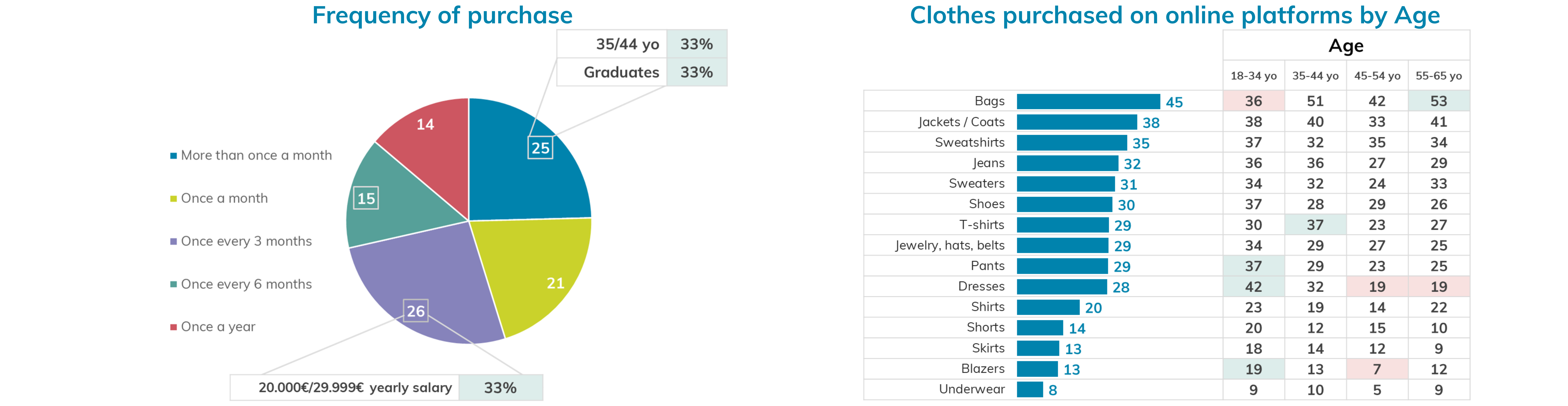 Our data shows that a staggering 25% of respondents buy used clothes more than once a month, with Millennials making up 33% of this group. The trend shows no sign of slowing down either, with 45% of respondents reporting an increase in second-hand purchases compared to last year.